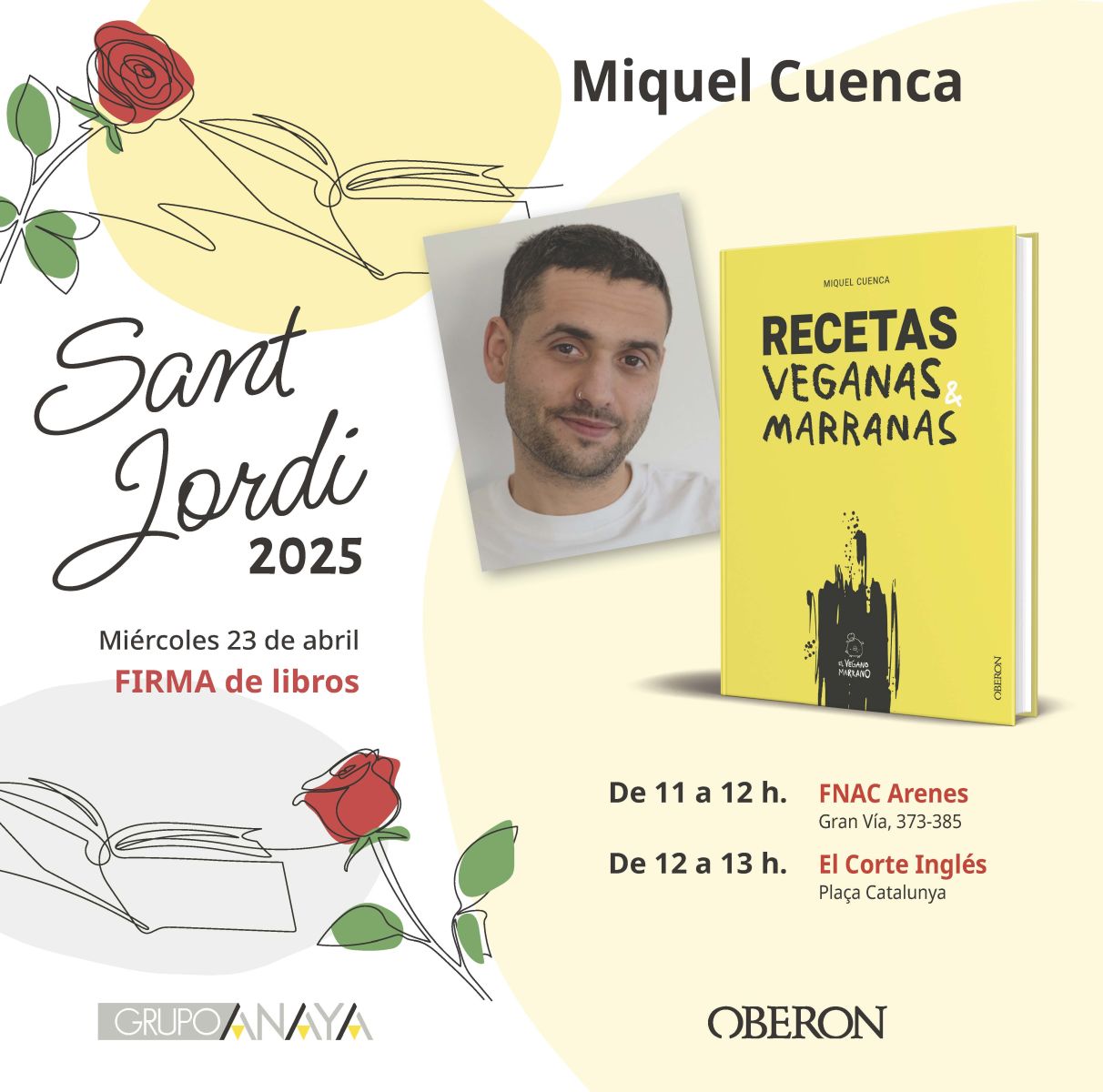 Para todos aquellos que creen que la cocina vegana es mucho más que ensaladas, el libro de Miquel Cuenca les va a fascinar. Recetas veganas marranas es mucho más que un libro de recetas, es una demostración de cómo la cocina plant based es deliciosa, variada y, sobre todo, muy divertida. El libro perfecto para abandonar prejuicios y sumergirse en una cocina vibrante y muy marrana. Y si quieres conocer a Miquel, búscale el 23 de abril en Barcelona en las siguientes librerías para que firme tu libro: